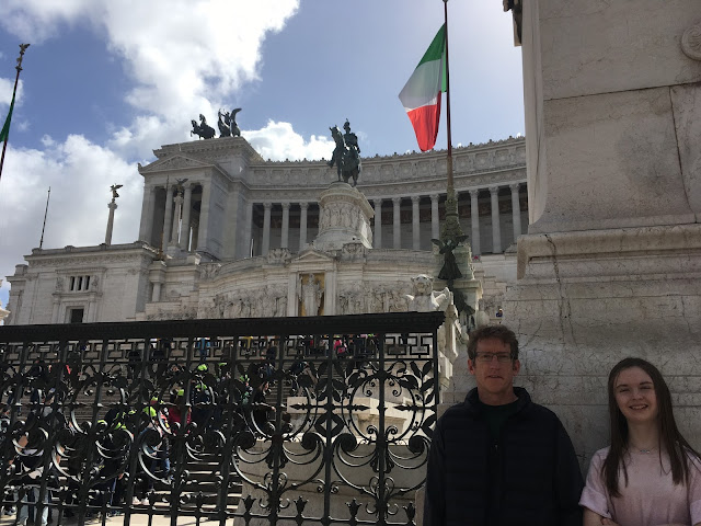This is the Altara della Patria or Alter of the Fatherland, finished in 1925, and built to honor Emanuele II, who was the king on the throne when Italy became unified. And just around behind it, we found the ancient structures of the Roman Forum, or the plaza that was the seat of the ancient government.