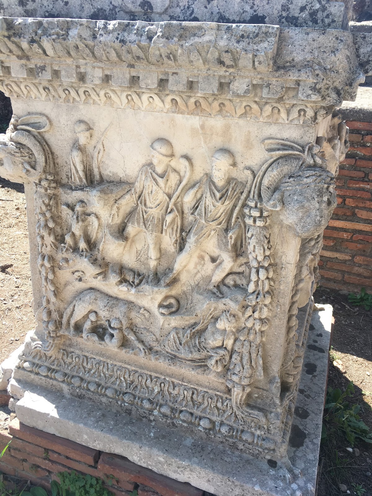 Notice Romulus and Remus on this altar (it's actually a reproduction of the original). This was near the merchant shops. They could sacrifice an animal on it and "read the entrails," to help them make business and trading decisions in the Forum.